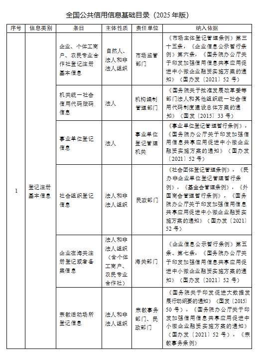 关于《全国公共信用信息基础目录(2025 年版)》的说明