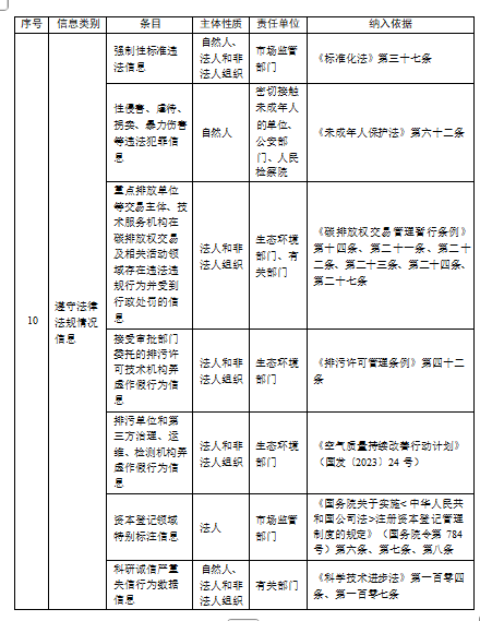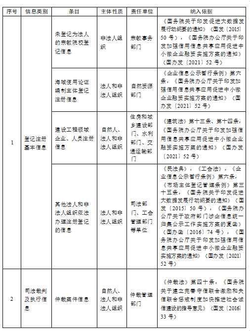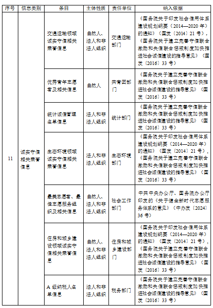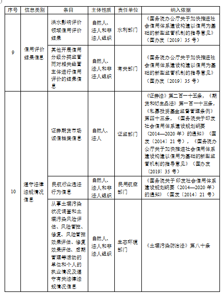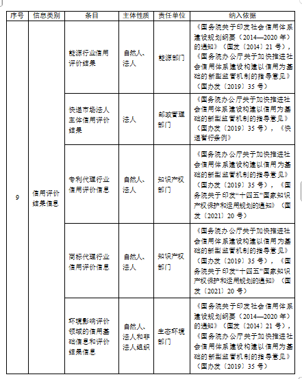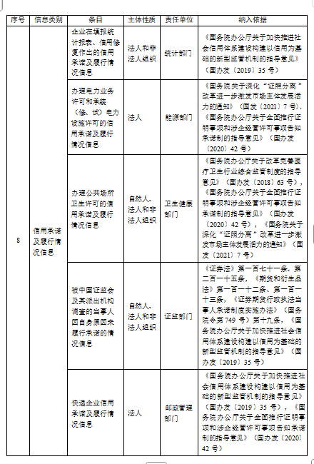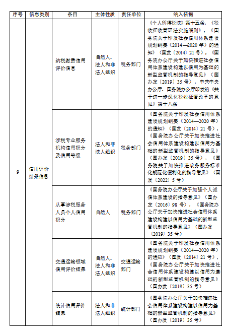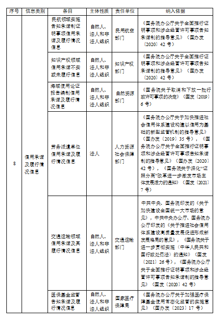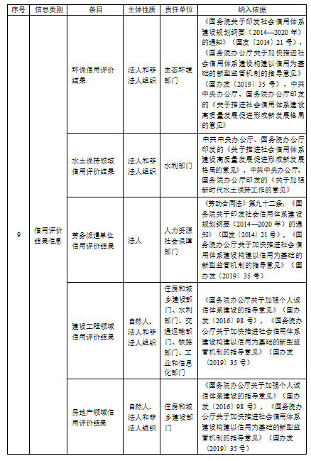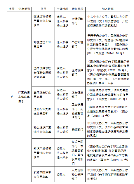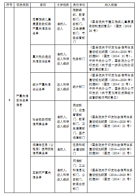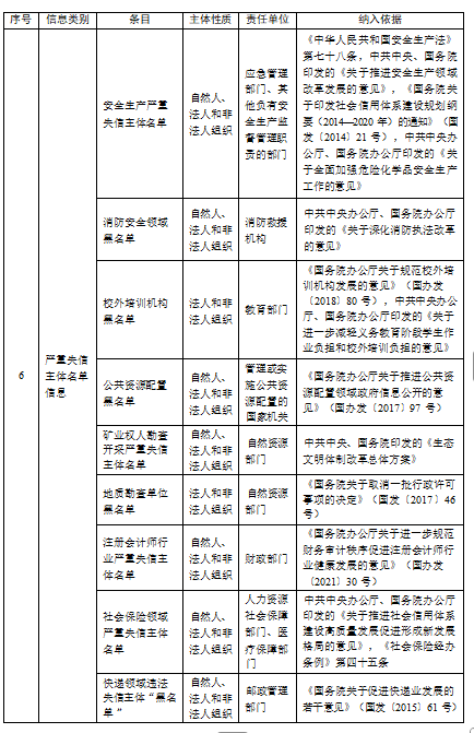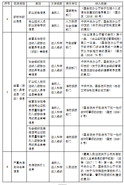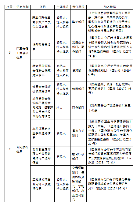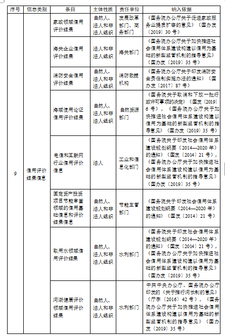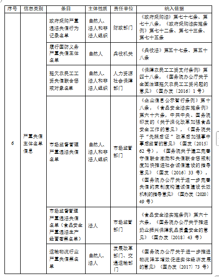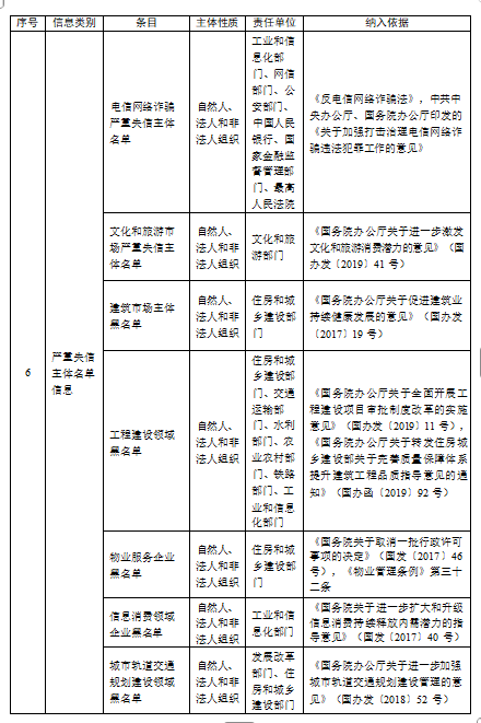 六、法律、行政法规或者党中央、国务院政策文件对公共信用信息纳入范围作出新的规定的,从其规定。