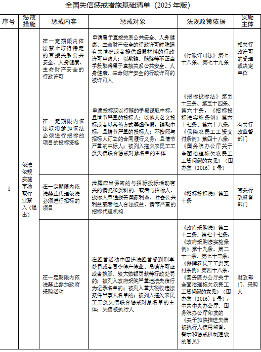 关于《全国失信惩戒措施基础清单(2025 年版)》的说明