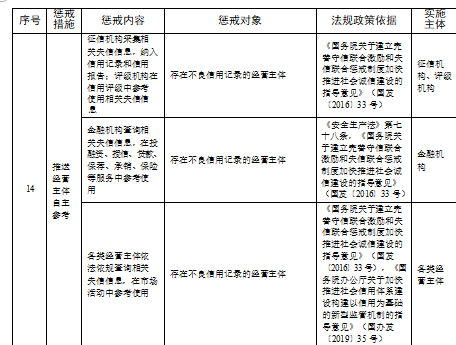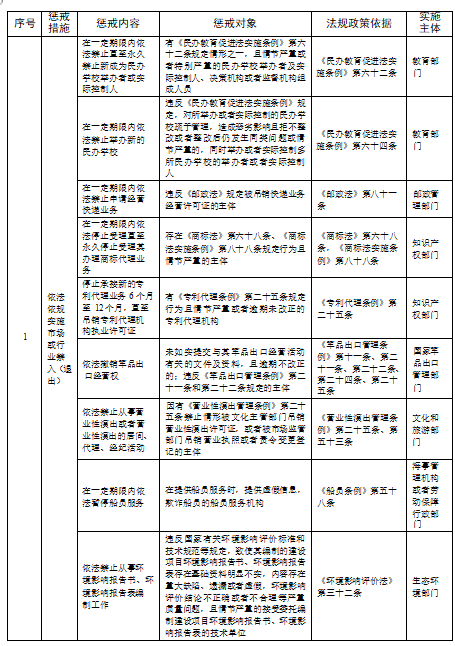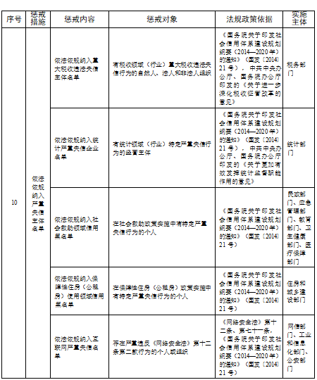 一、本清单所称的失信惩戒,是指国家机关和法律、法规授权的具有管理公共事务职能的组织( 以下统称“公共管理机构”)以及其他组织依法依规运用司法、行政、市场等手段对失信行为责任主体进行惩戒的活动。