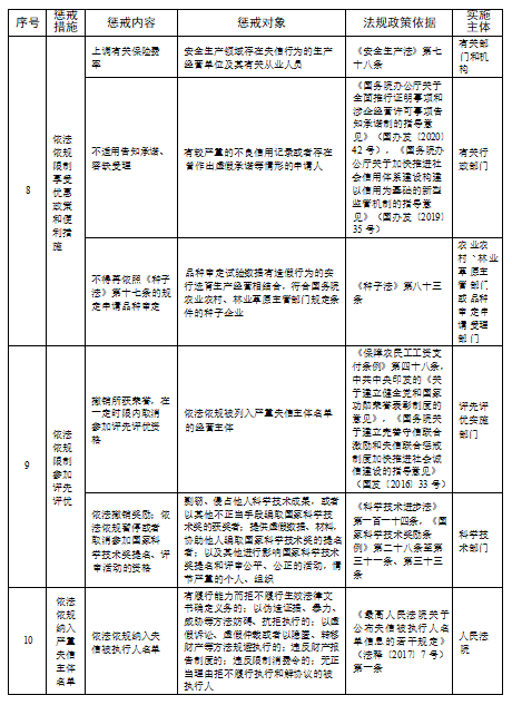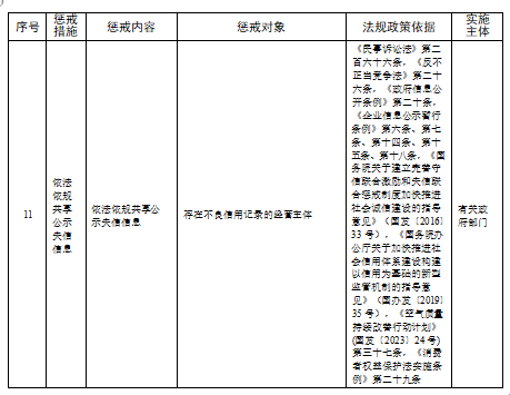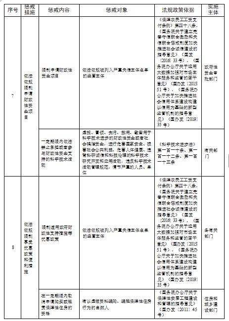 七、法律、行政法规或者党中央、国务院政策文件对失信惩戒措施作出新的规定的,从其规定。