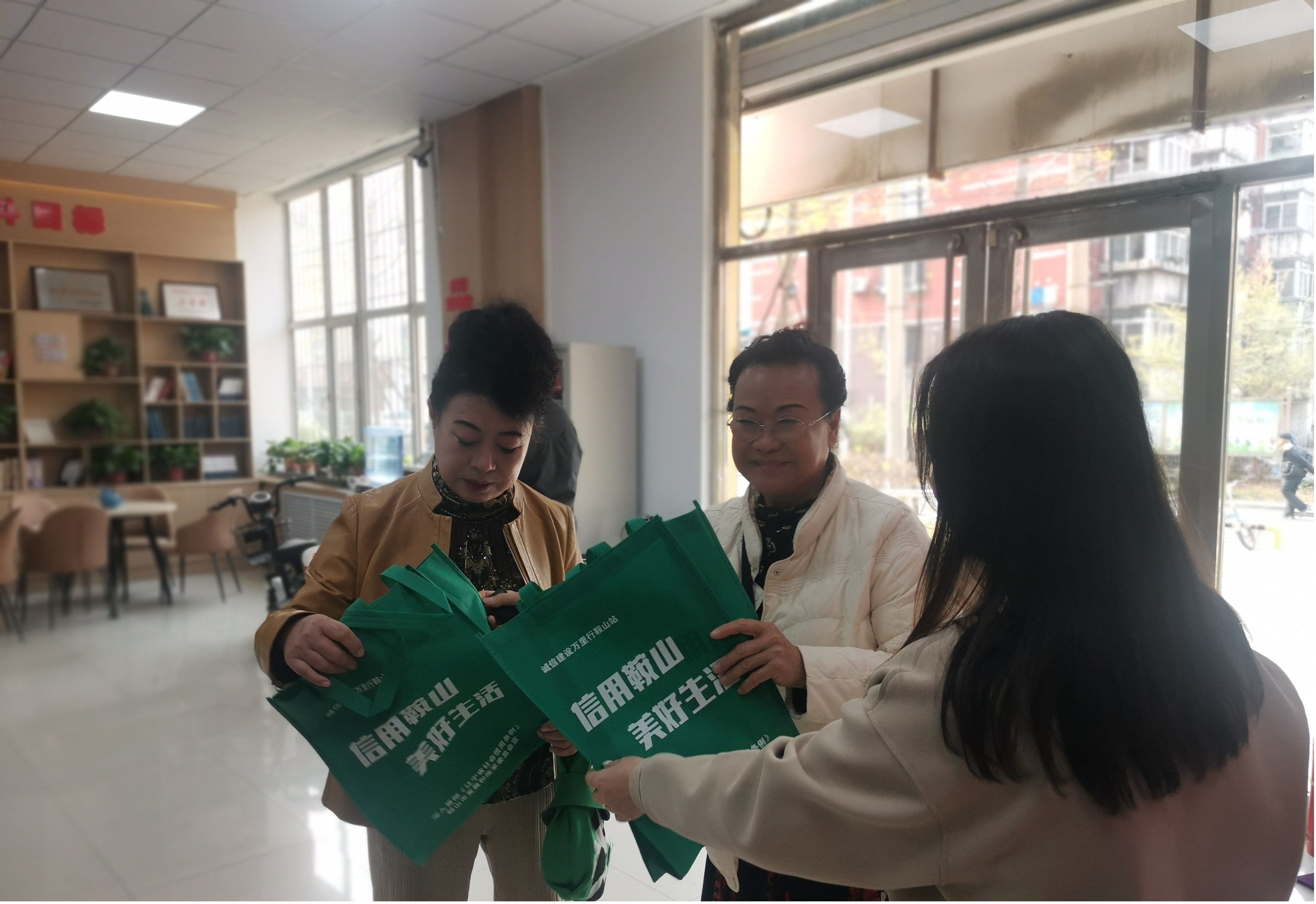 为全面加强社区居民的诚信教育,树立诚实守信的意识,营造良好的社会氛围。近日,鞍山市铁西区永乐街道永丰社区开展以“信用鞍山 美好生活”为主题的宣传教育实践活动,永丰社区工作人员向大家发放了诚信宣传手提袋,向社区居民宣传、解读社会信用体系建设及居民关心的问题,将诚信意识渗透到每一位社区居民心中。