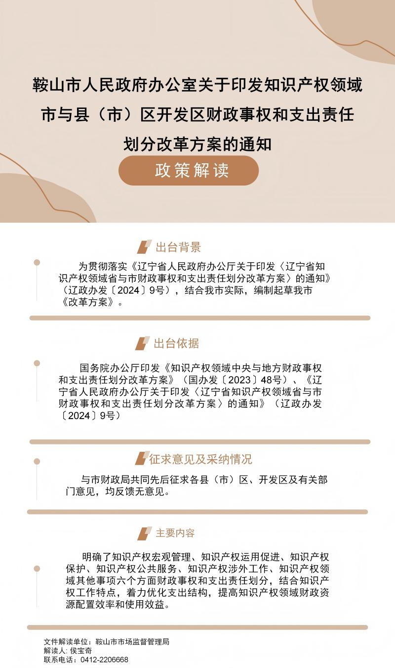 《鞍山市人民政府办公室关于印发<鞍山市知识产权领域市与县(市)区财政事权和支出责任划分改革方案>的通